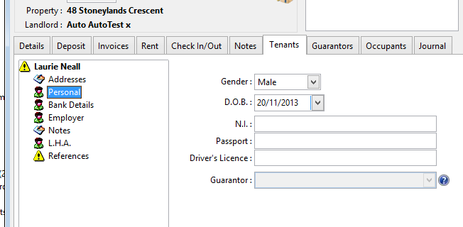 Within Rentman make sure you have entered as much personal information as possible on the tenant’s (and guarantor’s if applicable) tab of the deal screen.