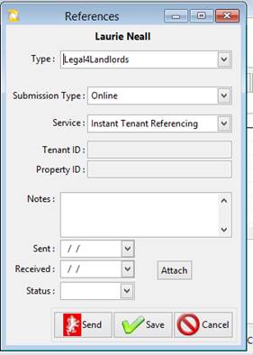 Select Legal4Landlords as the type of reference and the screen will reconfigure itself.